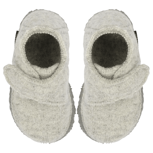 Bequeme Hausschuhe für Babys aus 100% Bio-Schurwolle oder Bio-Baumwolle. Mit Anti-Rutschsohle aus Naturkautschuk. Perfekt für Zuhause, Kita oder Krippe.