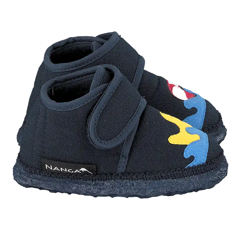 This model is available in sizes 18 to 26 (baby). Nanga uses only 100% pure organic cotton combined with 100% natural latex, making it a truly natural product. Washable at 30°C on a delicate cycle in a laundry bag. While machine washable, they must not be tumble dried or dried on a radiator or in direct sunlight, as this would cause the natural rubber sole to dry out excessively. Important: Do not use fabric softener! The unique design of Nanga slippers allows for the economical use of natural resources and environmentally friendly production – simply 100% "Green"! Nanga, the manufacturer of quality slippers, house shoes, house shoes, soft slippers, felt slippers, house shoes, and ballerina flats for home and kindergarten.