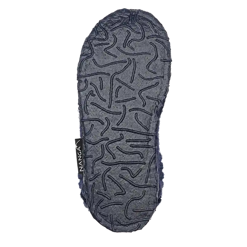 Perfect fit, rigorously tested, filled with warmth and comfort for your little ones, providing perfect support. The natural rubber sole guarantees no slipping or color transfer, regardless of the surface. This new Nanga model is always a perfect fit! Whether at kindergarten, at home, or at a friend's house, Nanga keeps feet well-protected and prevents sweating. Only Nanga's completely elastic, genuine, and patented latex sole guarantees the natural rolling motion of the foot. This model is available in sizes 24 to 42. Nanga uses only 100% pure organic virgin wool combined with 100% natural latex, making it a truly natural product.