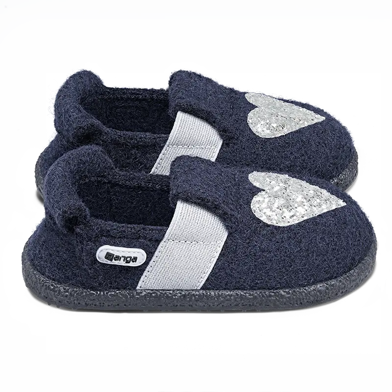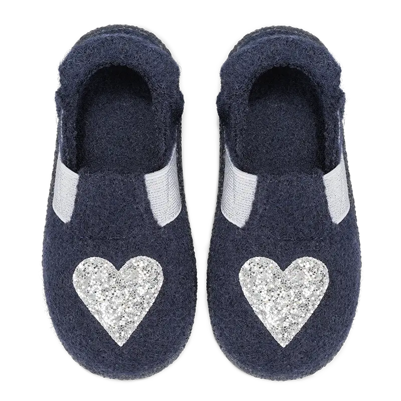 With our I heart U, you'll make every day sparkle! A silver glitter heart shines on dark blue fabric on both shoes – a real eye-catcher for heart fans of all ages.