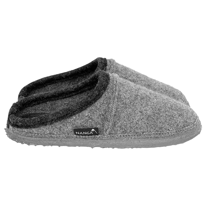 Der Slipper für Damen und Herren von Grösse 36 bis zur Größe 46. Durch den etwas erhöhten hinteren Rand ist der Halt am Fuß in jeder Situation optimal. Die patentierte Relief-Naturkautschuksohle ist hochelastisch und super weich. Es gibt garantiert kein Rutschen oder Abfärben. Die 3 Hauptfarben sind dunkelblau, grau und natürlich schwarz. Da ist für jeden die passende Größe und Farbe dabei! Diese Nanga Hausschuhe passen immer! Bei Nanga werden nur 100% natürliche Materialien verwendet. Die gewalkte Bio-Schurwolle sorgt jederzeit für richtig temperierte Füße. Die einzigartige Schnittform der Nangas ermöglicht den sparsamen Umgang mit natürlichen Ressourcen und eine umweltschonende Verarbeitung – 100% green, für noch mehr Nachhaltigkeit. Reinigung: Die Hausschuhe sind bis zu einer Temperatur von 30°C waschmaschinenfest, im Wäschenetz, dürfen aber keinesfalls in den Wäschetrockner gegeben oder auf der Heizung bzw. bei direkter Sonneneinstrahlung getrocknet werden, da der Naturkautschuk der Sohle sonst zu sehr austrocknen würde. Wichtig: Auch keinen Weichspüler verwenden!