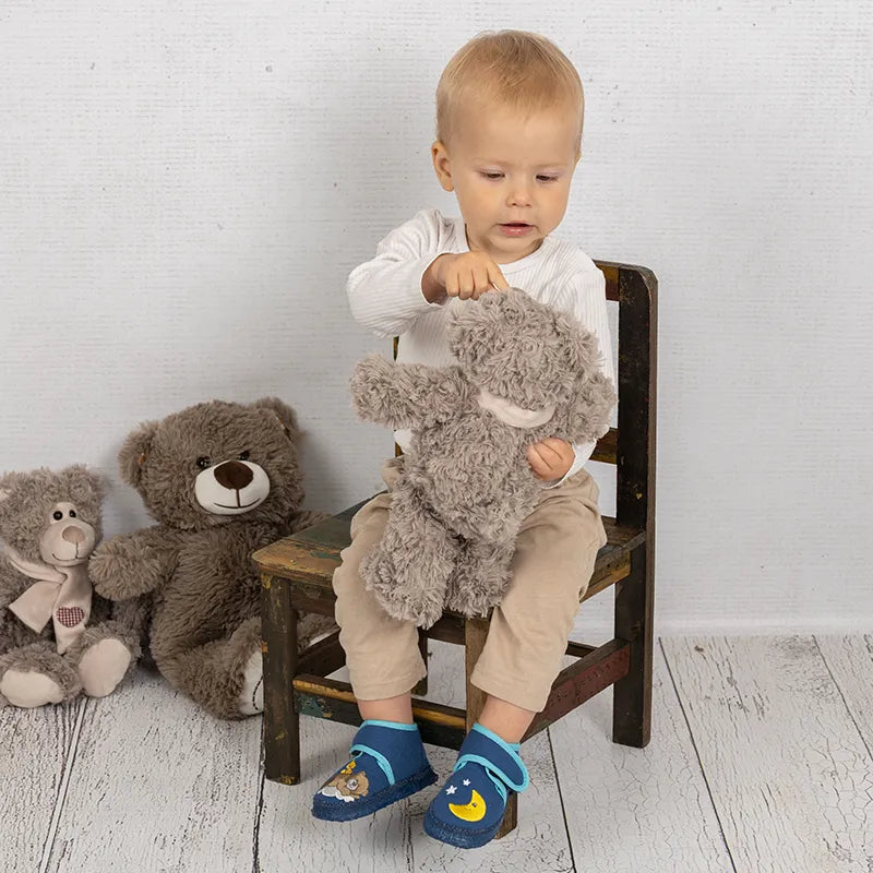 Das weiche Innenmaterial schmiegt sich sanft an kleine Füße, hält warm und macht die Hausschuhe extra gemütlich