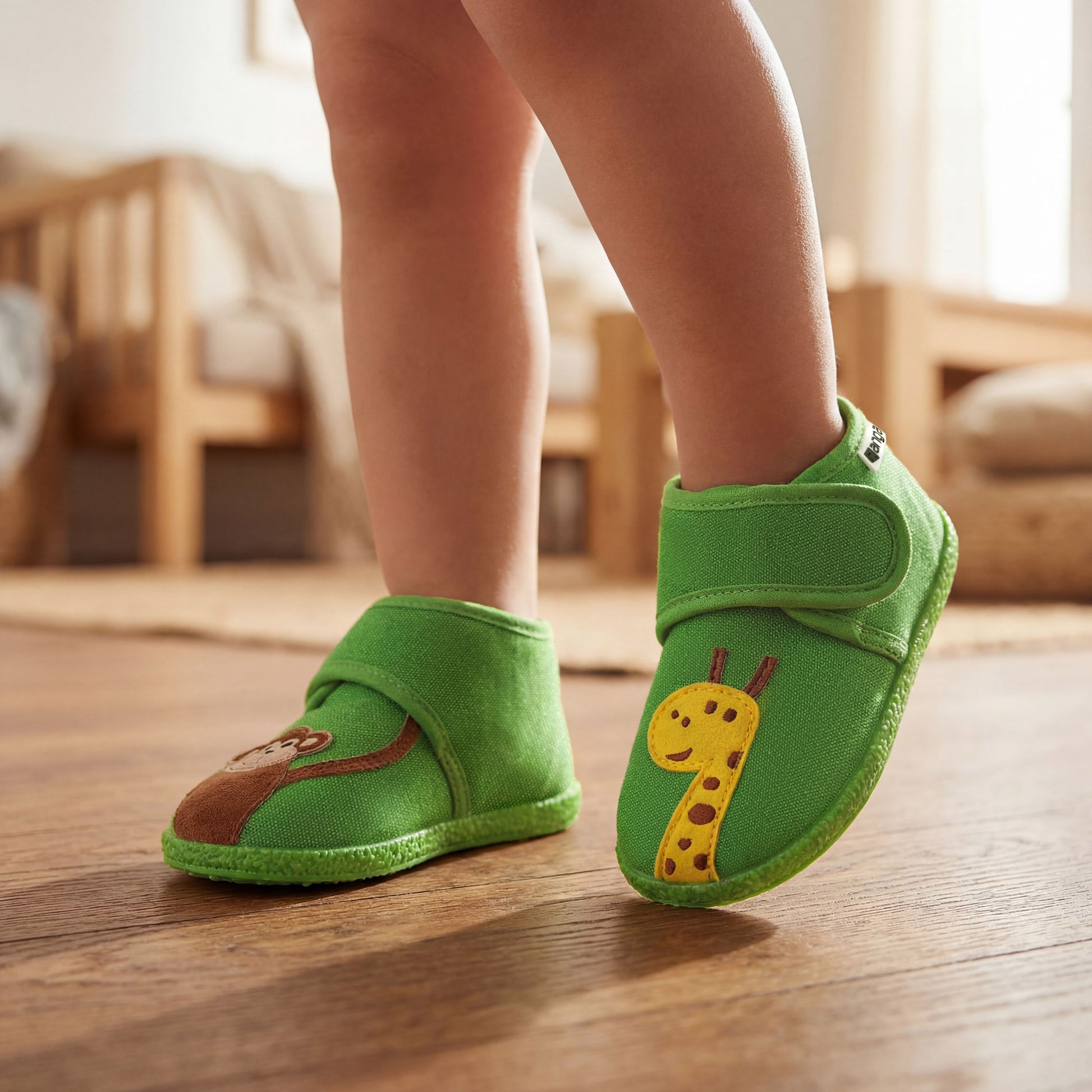 Das weiche Innenmaterial schmiegt sich sanft an kleine Füße, hält warm und macht die Hausschuhe extra gemütlich
