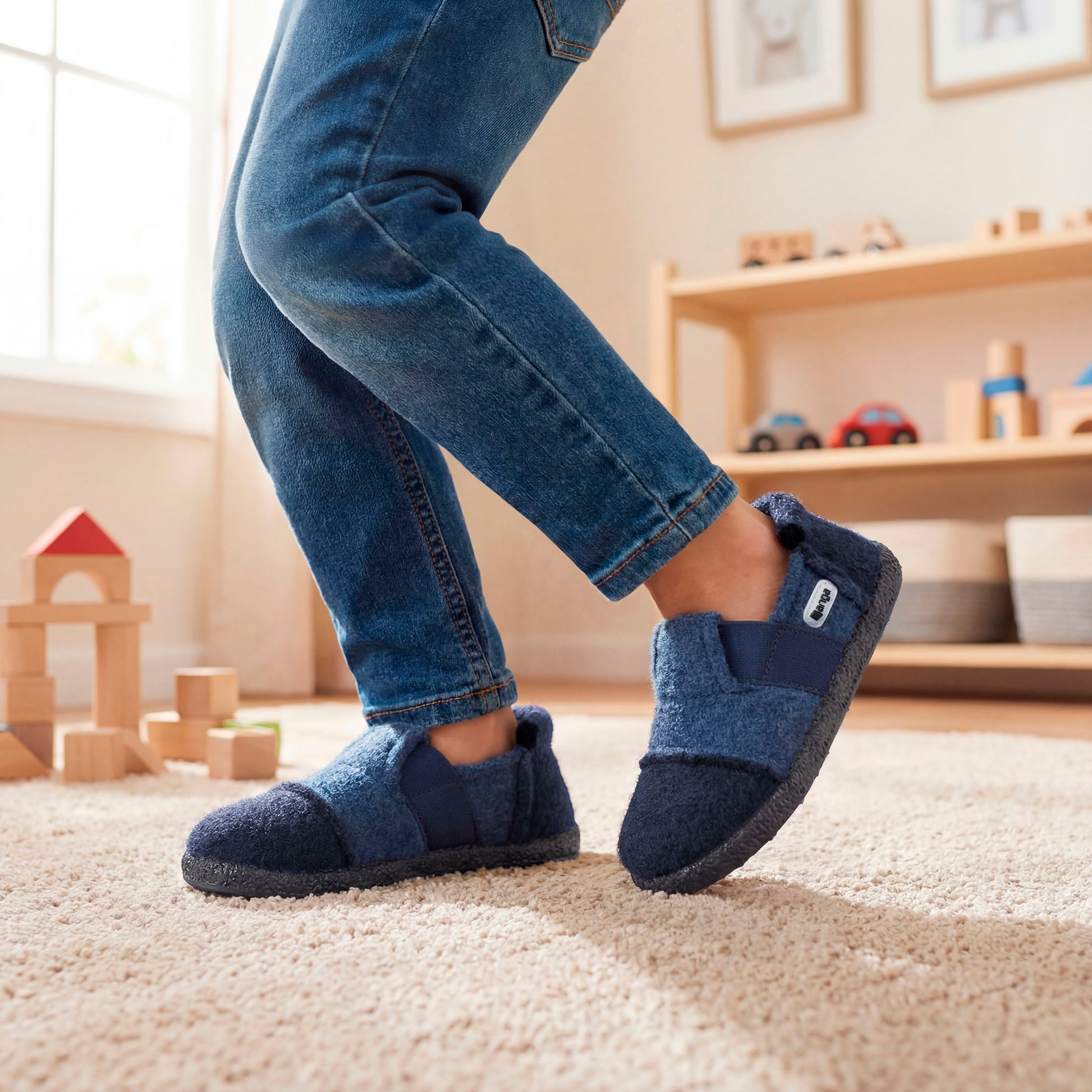 Schlicht, praktisch und natürlich – Berg Dunkelblau ist der Hausschuh, der immer passt.