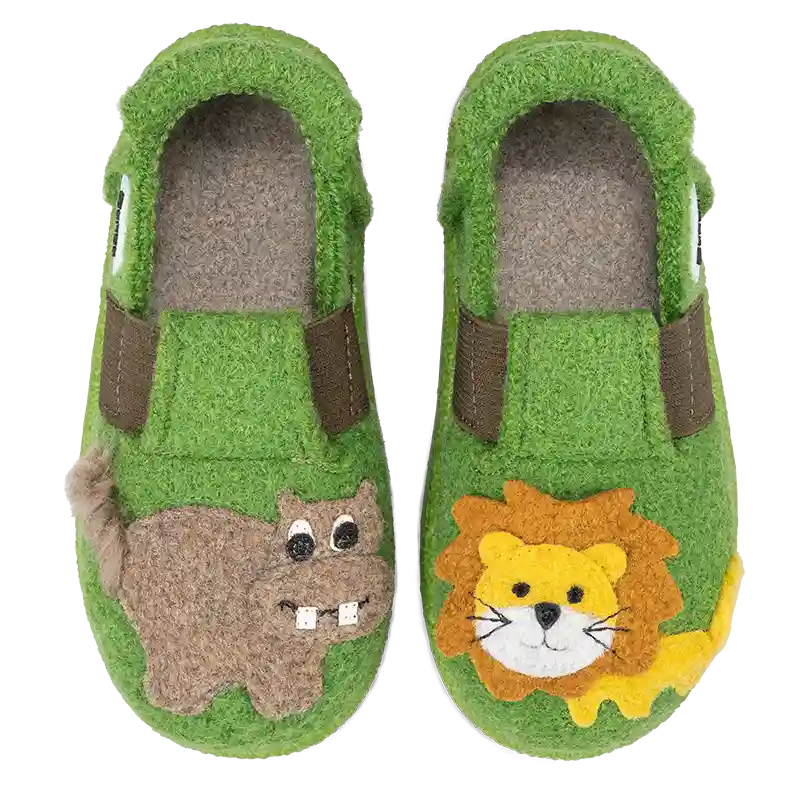 Mit Jungle Kings wird jeder Tag zu einer Entdeckungsreise durch den Dschungel! Auf dem saftig grünen Schuh begrüßt dich ein freundlicher Löwe mit strahlender Mähne 🦁 und ein lachendes Nilpferd, das mit seiner guten Laune einfach ansteckend ist. 💚