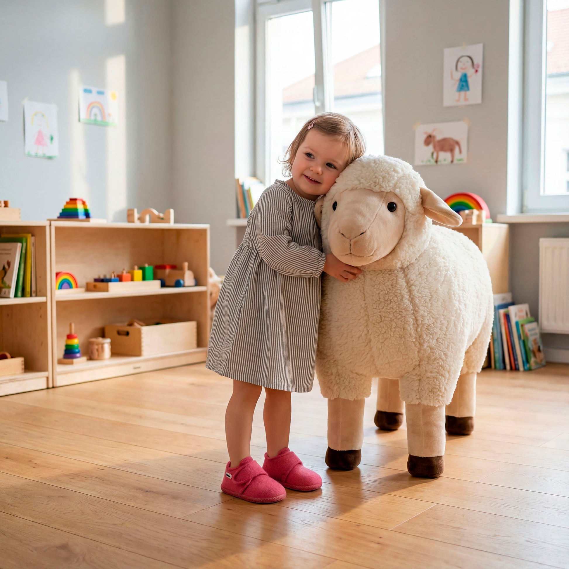 Das weiche Innenmaterial schmiegt sich sanft an kleine Füße, hält warm und macht die Hausschuhe extra gemütlich