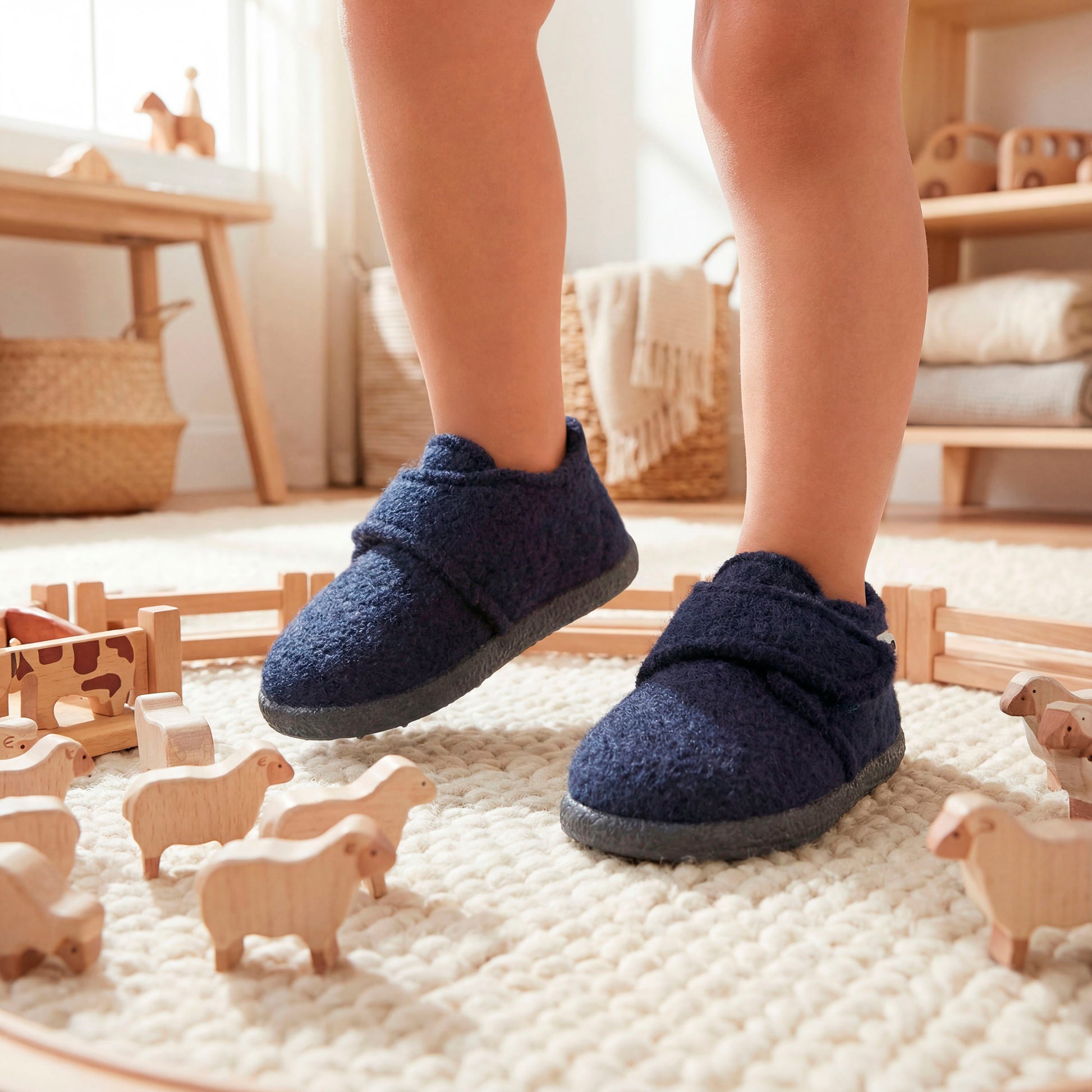 Das weiche Innenmaterial schmiegt sich sanft an kleine Füße, hält warm und macht die Hausschuhe extra gemütlich